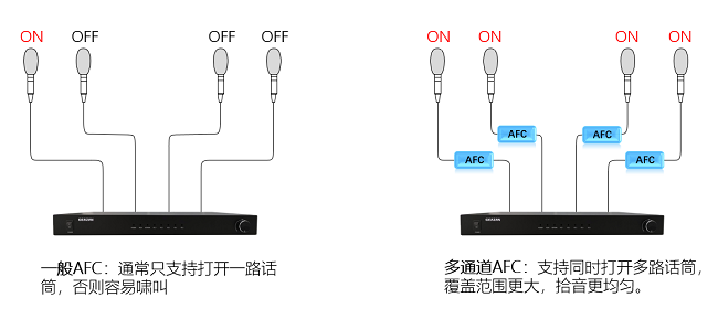 AFC还支持多种不同的音效模式低频、高频和中音,这些都是用于高性能的低音单元。AFC的另一个特点就是采用了全新的电源管理器技术。该技术可以提供一个完整的电源管理系统,使得在任何情况下,任何时候都可以对电池进行充电。AFC采用的是一种高性能的浮点DSP,它具有很强的反馈抑制功能。AFC使用的是一种高性能的浮点DSP,它具有很强的反馈抑制和噪声抑制功能。AFC还配置了多个独立调节控制器,包括单片机和外设调节器。AFC可以在不同的频段使用,包括在任何一个频率时,它能够自动调节电源的功耗和电流。